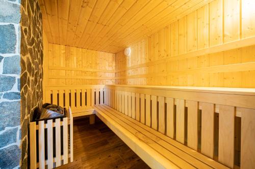 – pozostáva z 2 prepojených izieb s manželskou posteľou, priestorom na posedenie a satelitnou TV – súkromná kúpeľňa so sprchovacím kútom